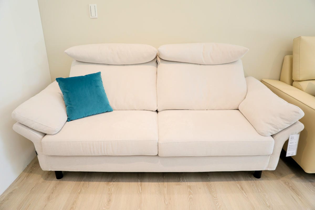 這款「伊豆 Izu」沙發最大特色在於座墊內材為高密度泡綿+獨立筒彈簧,坐起來很Q彈,