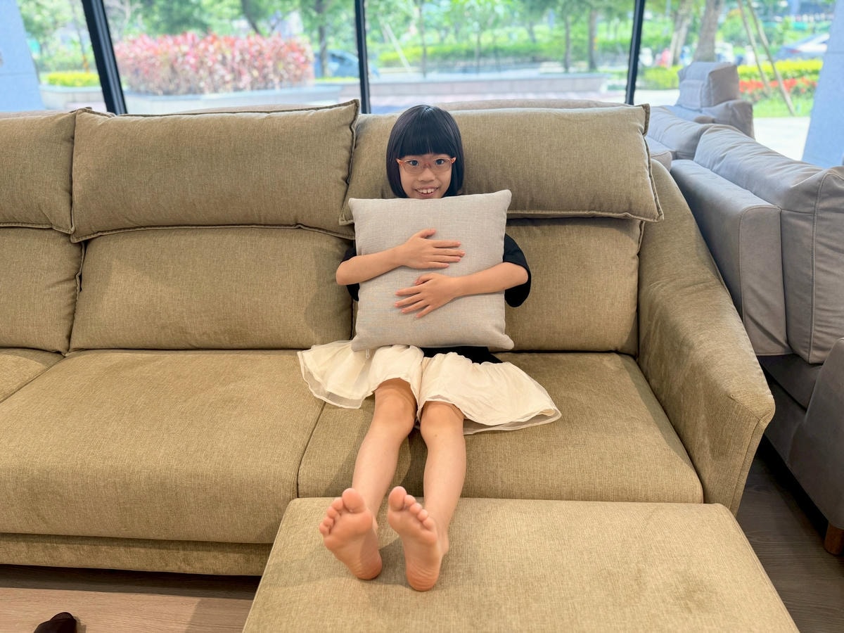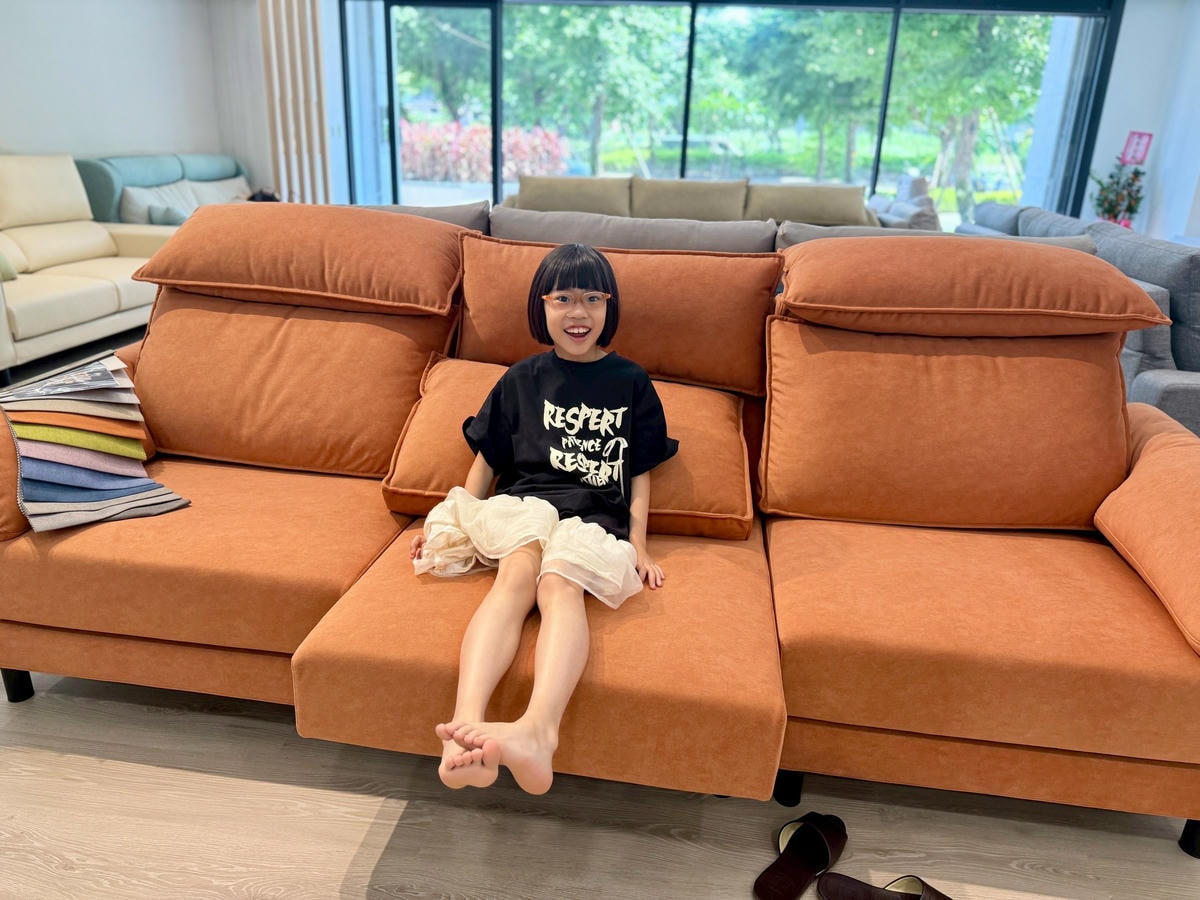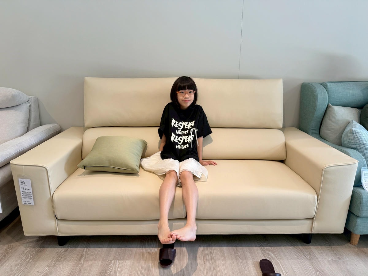女兒很喜歡的威尼斯沙發,坐寬有80cm以上,加長型滑軌設計或坐或半躺都很舒適