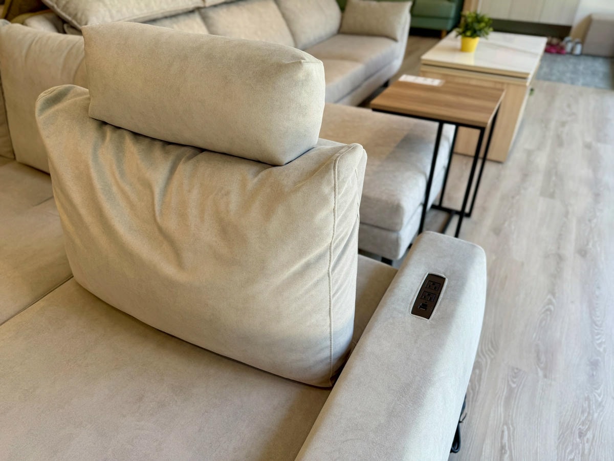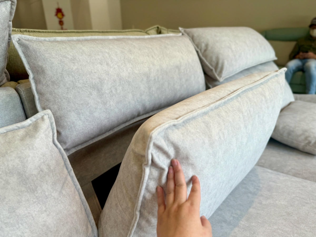 杜拜這款沙發現場展示使用的是超舒服的德國貓抓布,使用高密度泡綿,頭頸部份的包覆