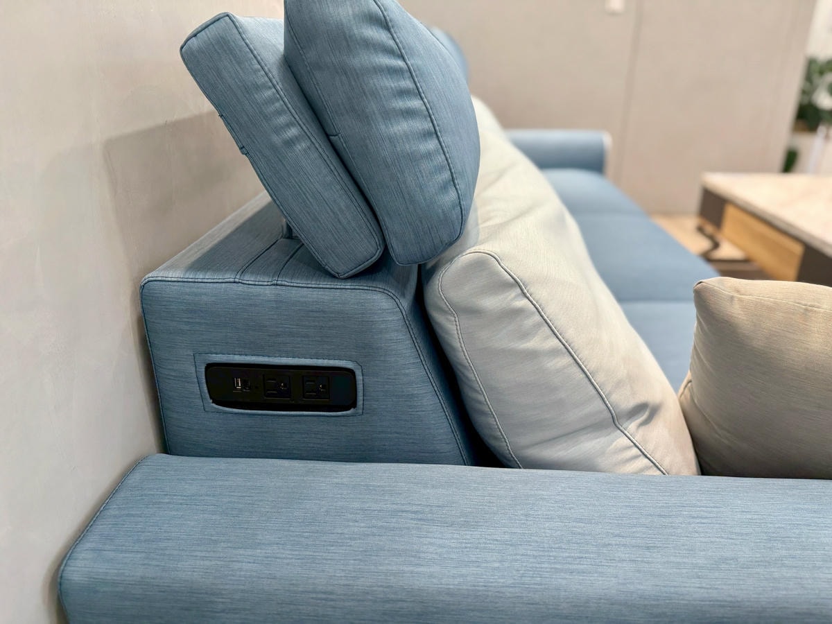 輔助式頭枕可拆,還含有多功能充電座,親切的店員說充電座還可以依照居家環境客製在