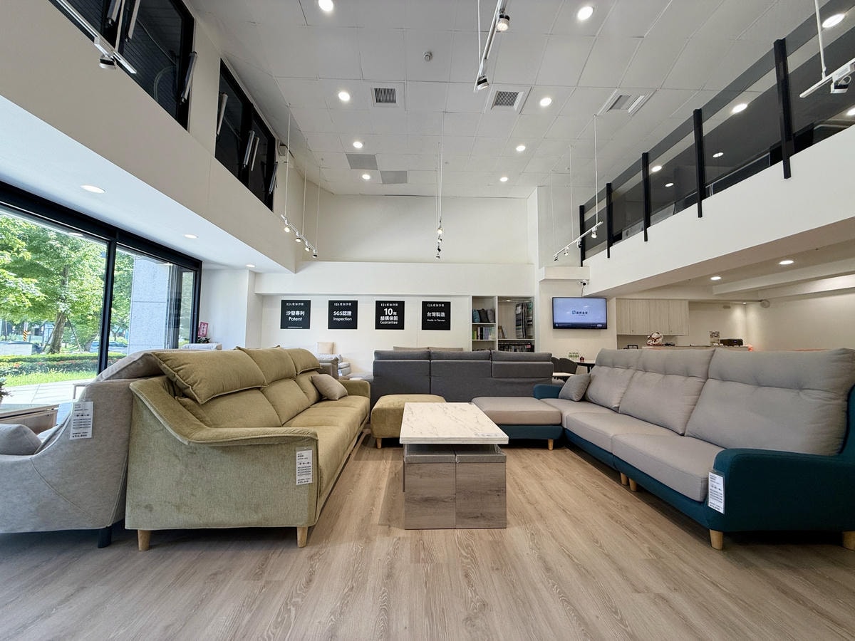 門市不僅僅是一個展示傢俱的地方,更像是一個能讓人放鬆、親身體驗各種沙發坐感與材質的溫馨空間