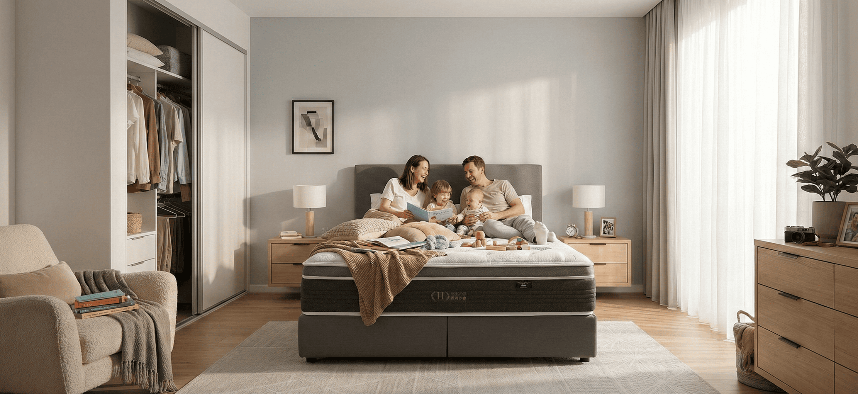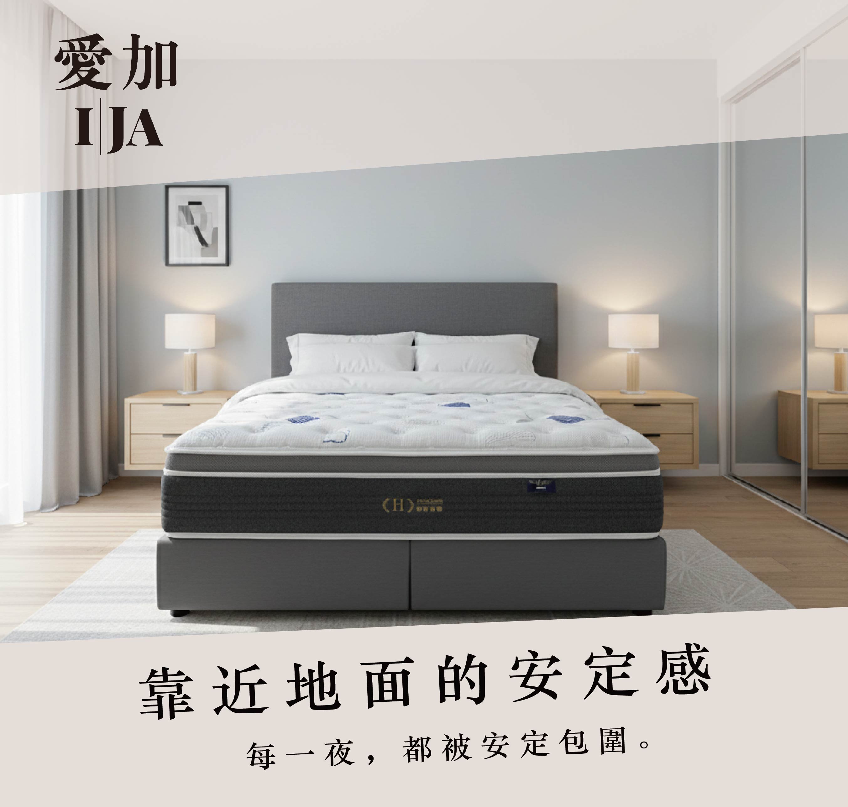 1. 小坪數救星:25cm 貼地視野,放大空間感 在有限的居住空間中,家具的高度決定了視覺的廣度。百富床架特有的 25cm 貼地設計,能有效拉開床面與天花板的距離,大幅降低垂直空間的壓迫感。這看似微小的幾公分差距,卻能讓小坪數臥房、多功能房或樓中樓夾層瞬間擁有如北歐居家般的通透與開闊。讓床變低,把空間還給生活。